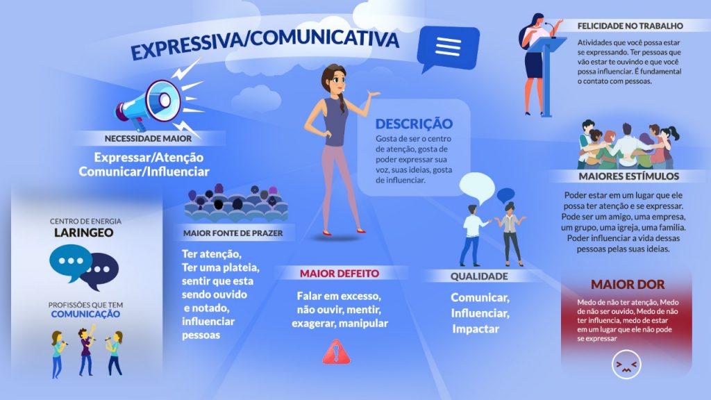 Pessoas que têm como maior necessidade influenciar outras pessoas, e usam a voz ou o corpo para fazer isso. Gostam de utilizar a comunicação para influenciar e liderar, e gostam que sua opinião ou experiência possa servir de exemplo ou motivação para outras pessoas. Precisam ser reconhecidos pelo que estão expressando ou expondo.